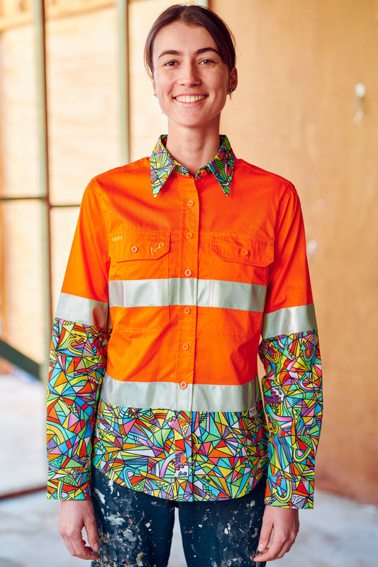 TradeMutt Women's Bonza Orange OR Yellow Day/Night Hi Vis 2.0 Full Button Work Shirt