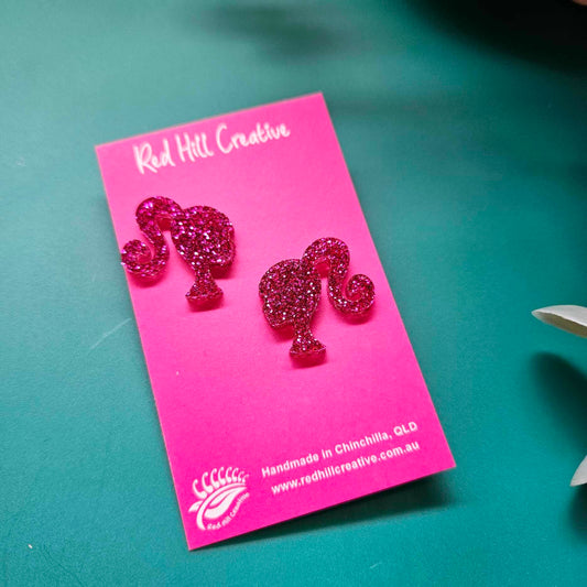 Barbie Style Head Studs | Hot Pink Glitter or Solid
