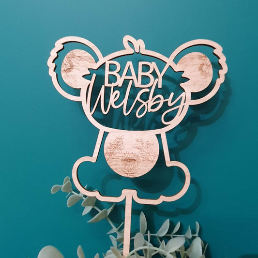 Koala and Native Flower Baby Shower Cake Topper | Personalised