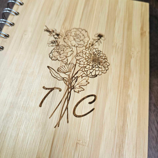 Floral Arrangement with Initials Engraved Bamboo Notebook | PERSONALISED