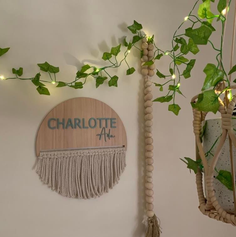 Personalised name plaque made from Bamboo and Acrylic ready for DIY macramé. Finished product is example only, this is NOT a finished macramé sign, macramé rope not included.