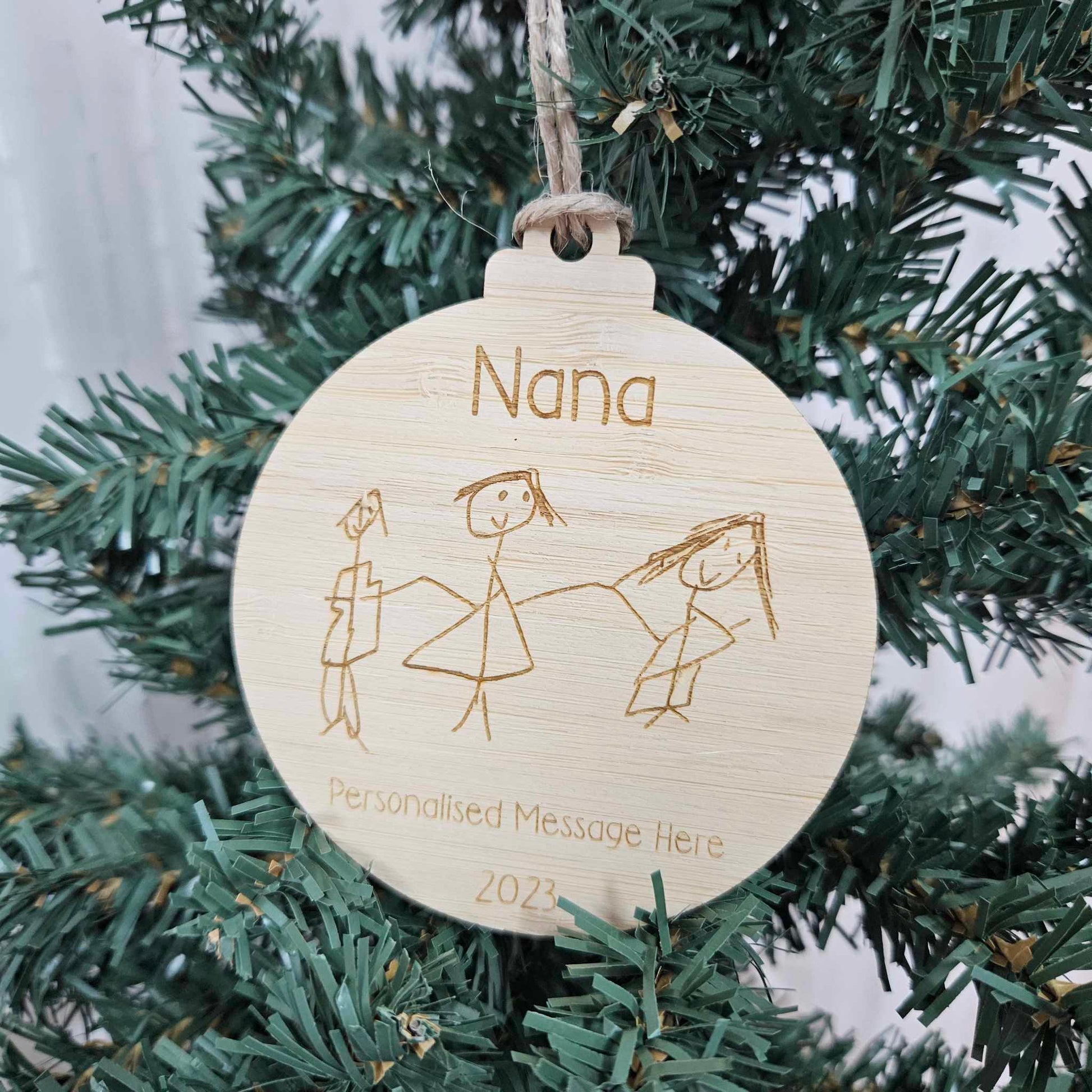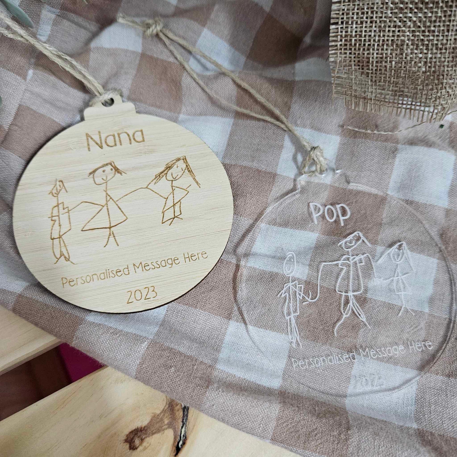 Create a special memory to be enjoyed for years to come with your very own drawings engraved into a clear or on to a bamboo bauble.