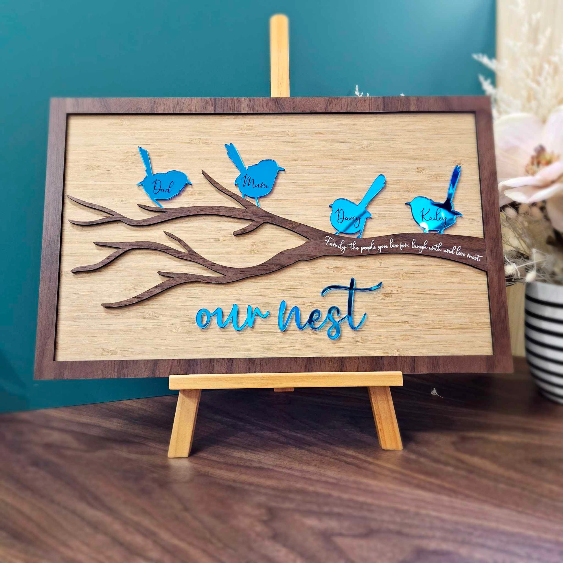 - Personalised Names - let us know the names of your "nest" that you would love included on the sign