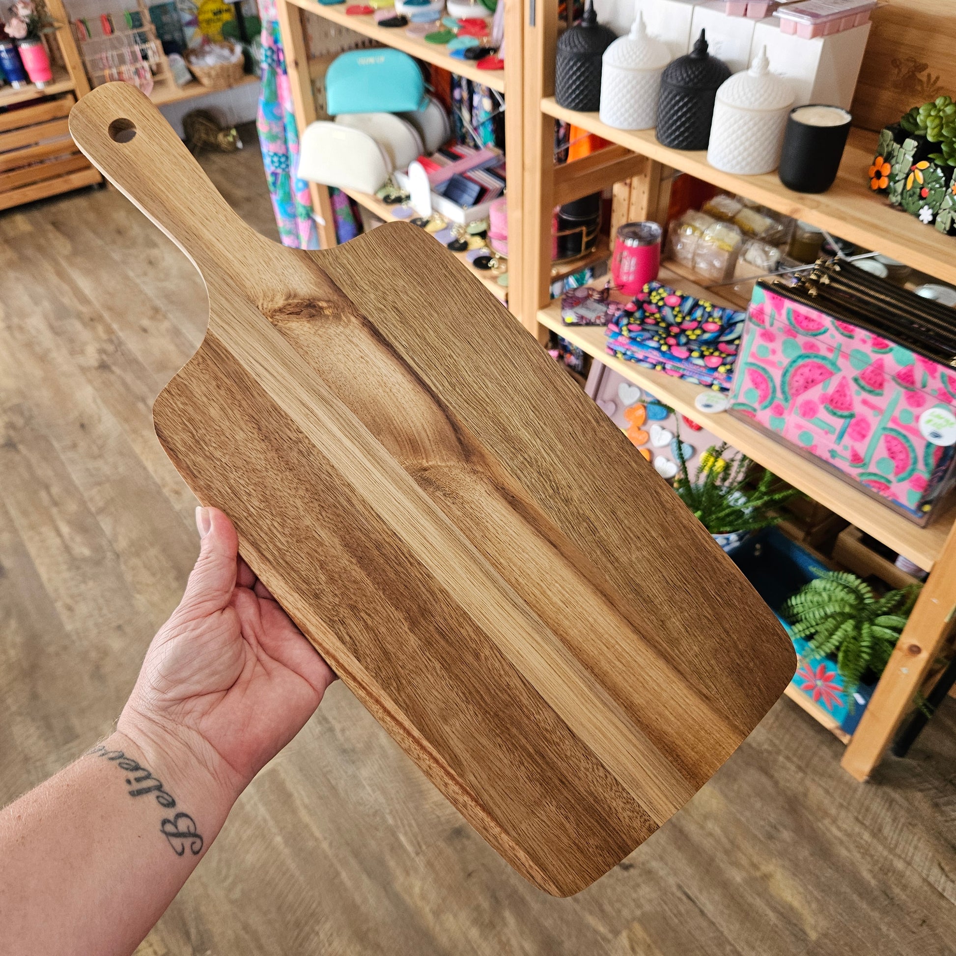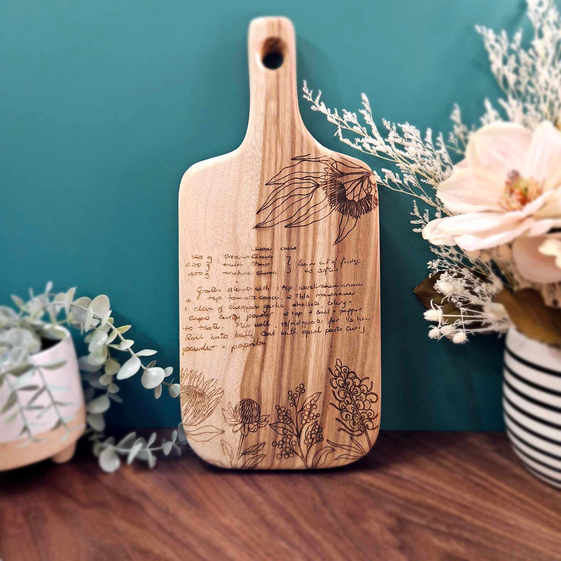 Create a treasured keepsake by laser engraving a family recipe on to an Acacia Paddle Serving Board 490mm x 200mm wide.
