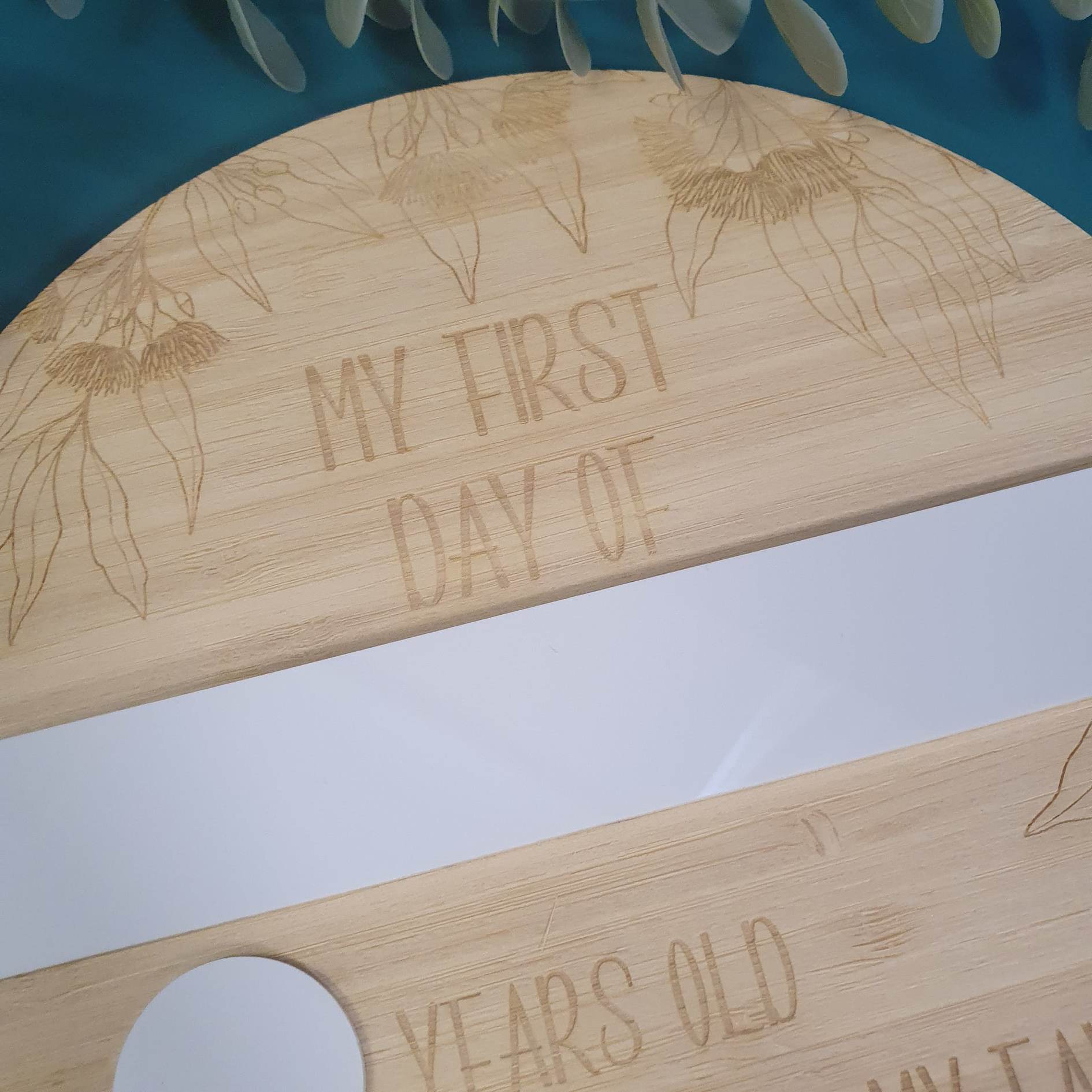 Laser engraved and cut from Bamboo and white gloss acrylic, our made to order boards are not only reversable (get first and last boards in one), they can be re used year after year.