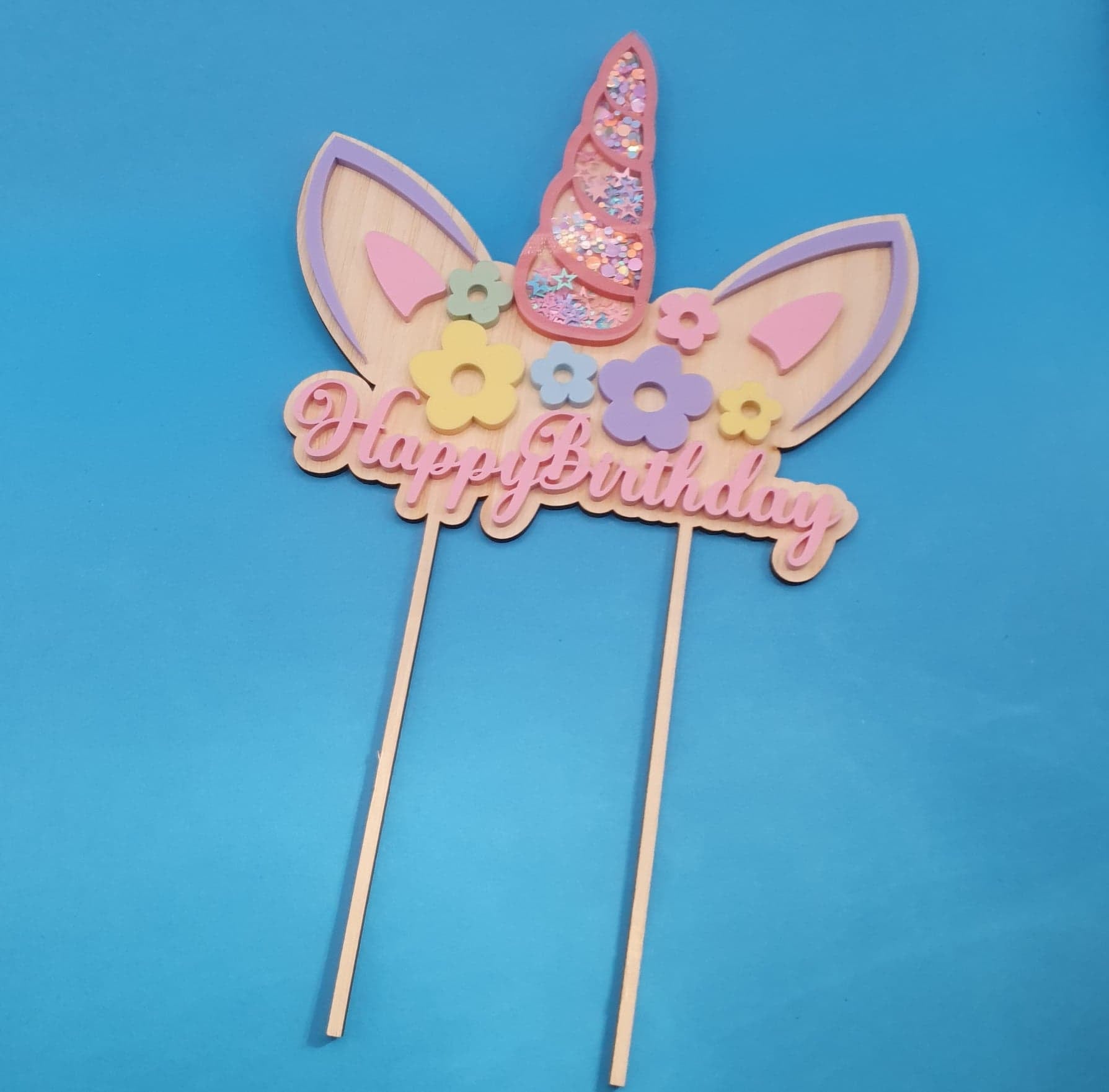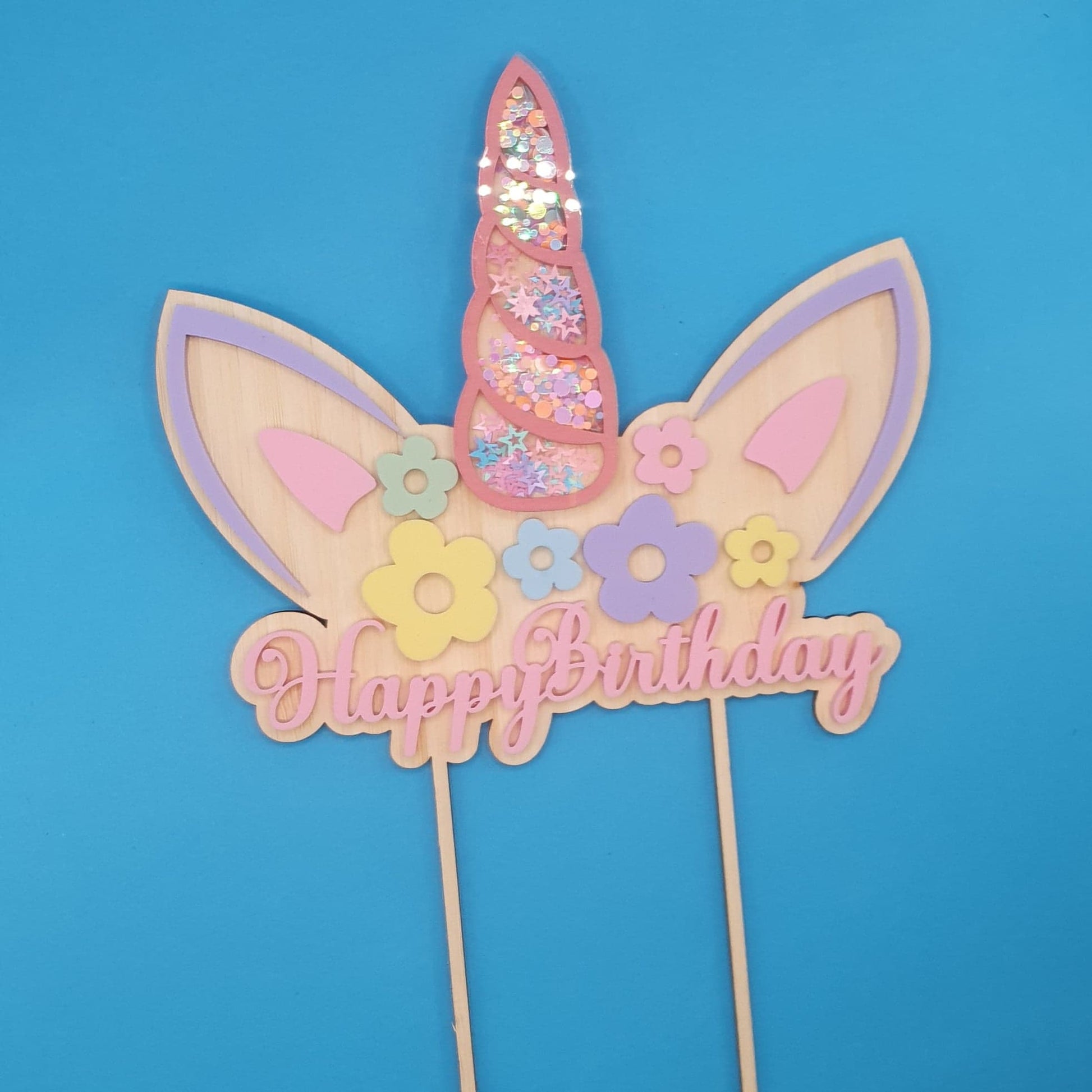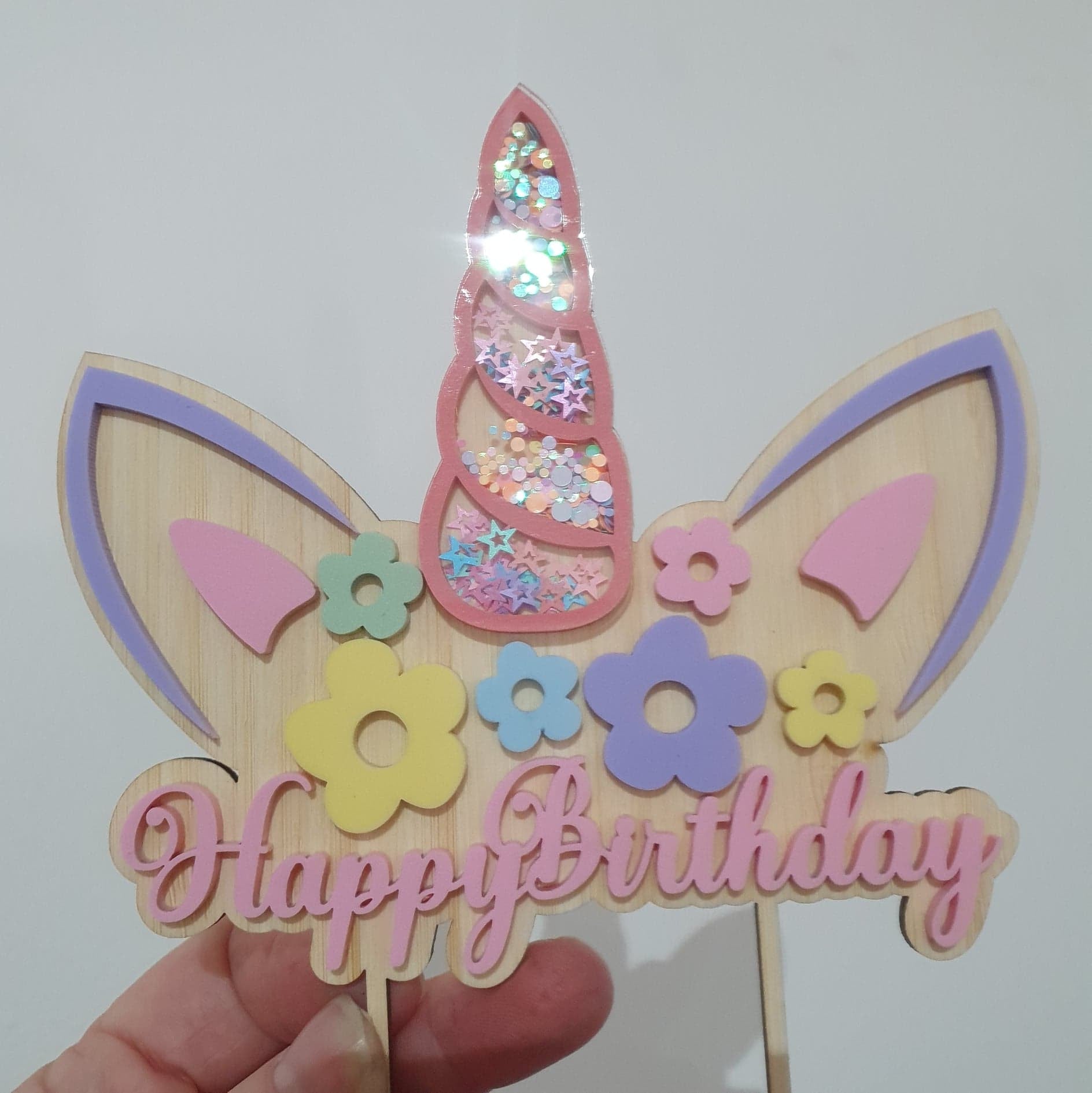 Unicorn Confetti 'Happy Birthday' Cake Topper